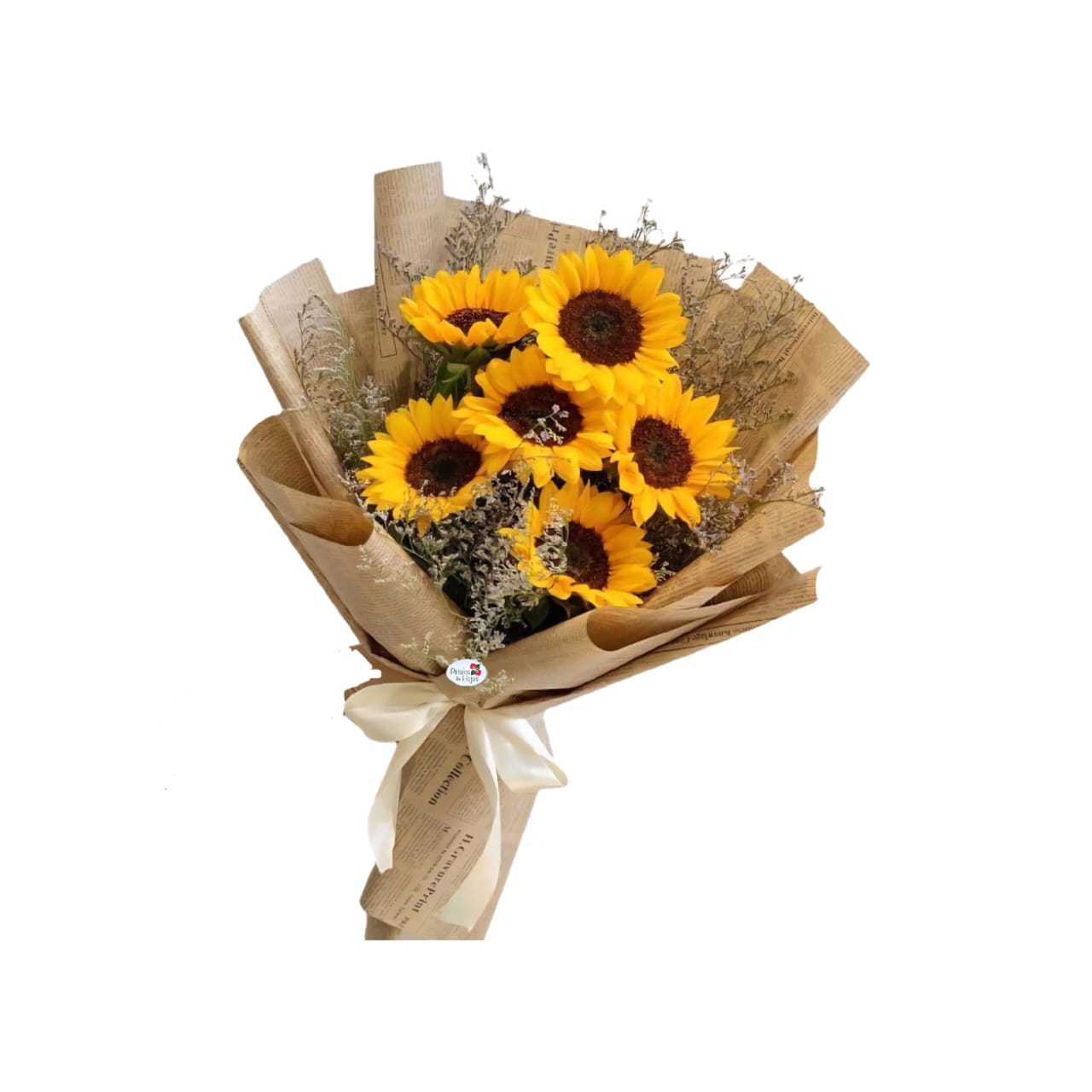 Excelente detalle de girasoles para sorprenderla, va decorado con caspia y elegante presentación.  Florería Pétalos y Hojas realiza envio de flores a domicilio en Lima metropolitana, consulta nuestra política de envios.  WhatsApp 993823411.